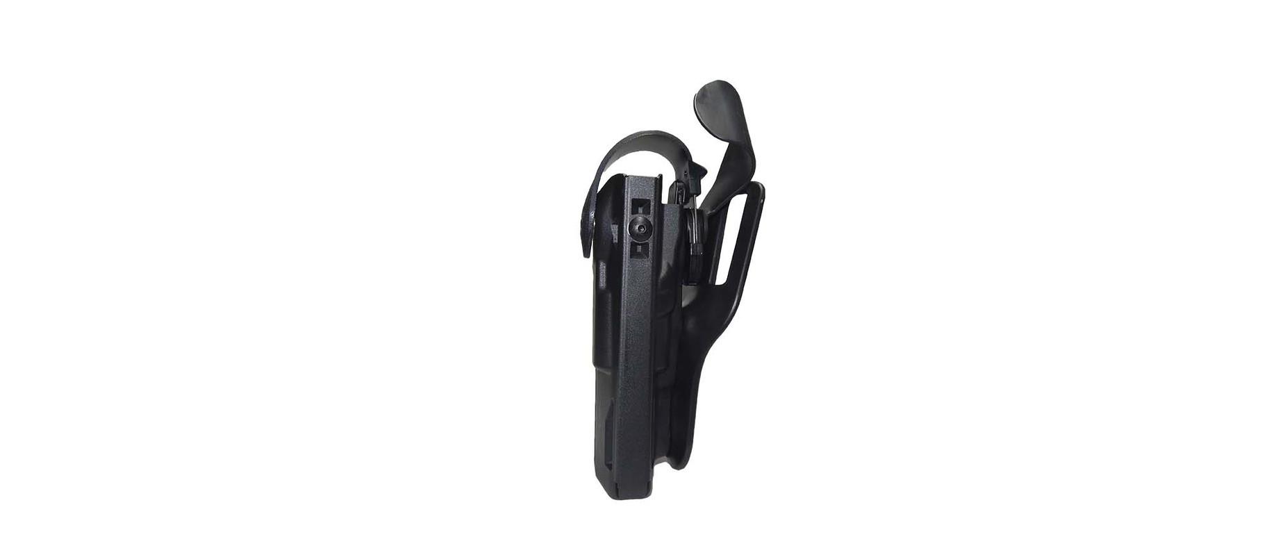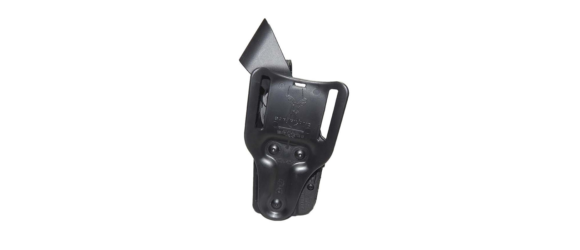 Funda para pistola SAFARILAND 7360 SIGSAUER SP2022 de polímero negro seguro automático lazo de bloqueo manual, lengüeta y desenfunde ajustable sujeción a correa de 2 pulg. MID RIDE 7360-278-411