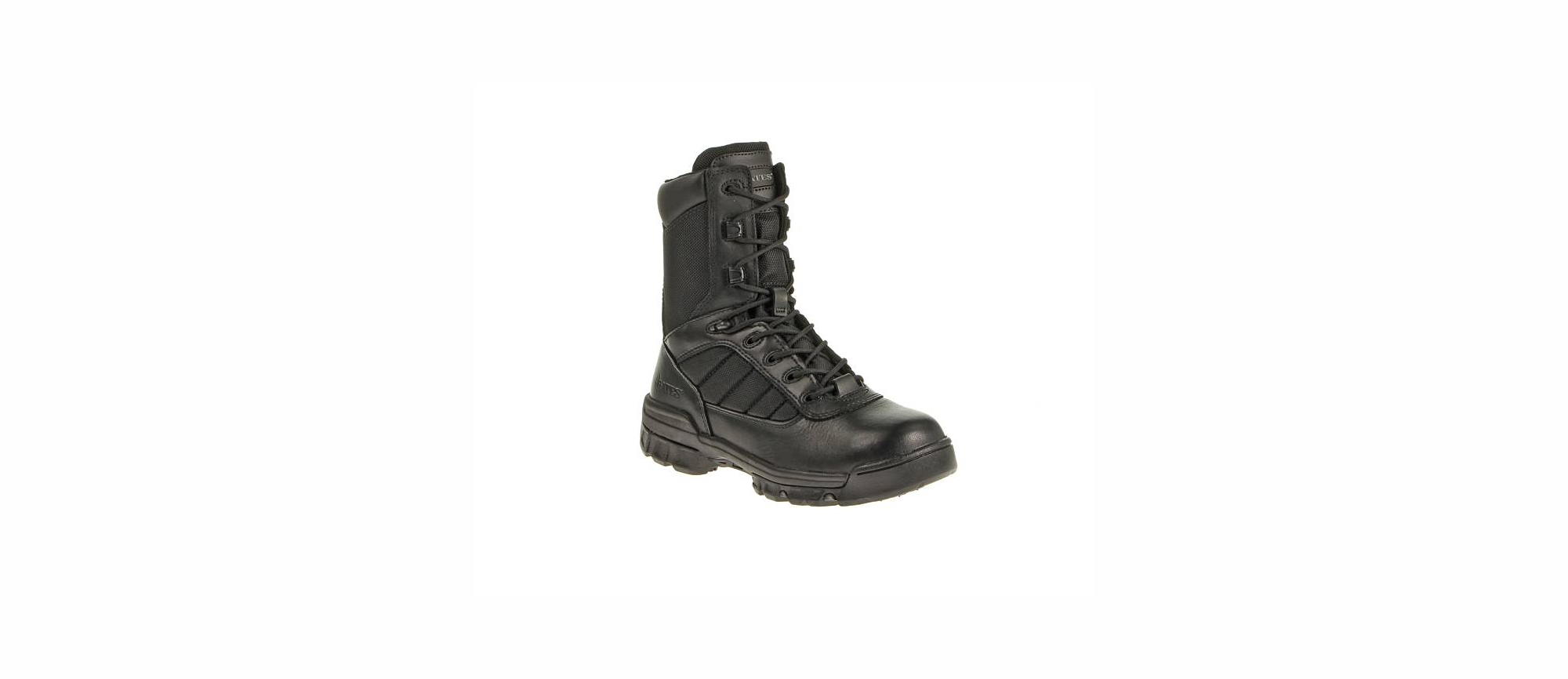 Botines BATES-8 SIDE ZIP Táctico de cuero negro y nylon, suela anti-deslizante, talla 8(41) hecho en materiales no metálicos indetectables en ambientes de seguridad electrónica E05161