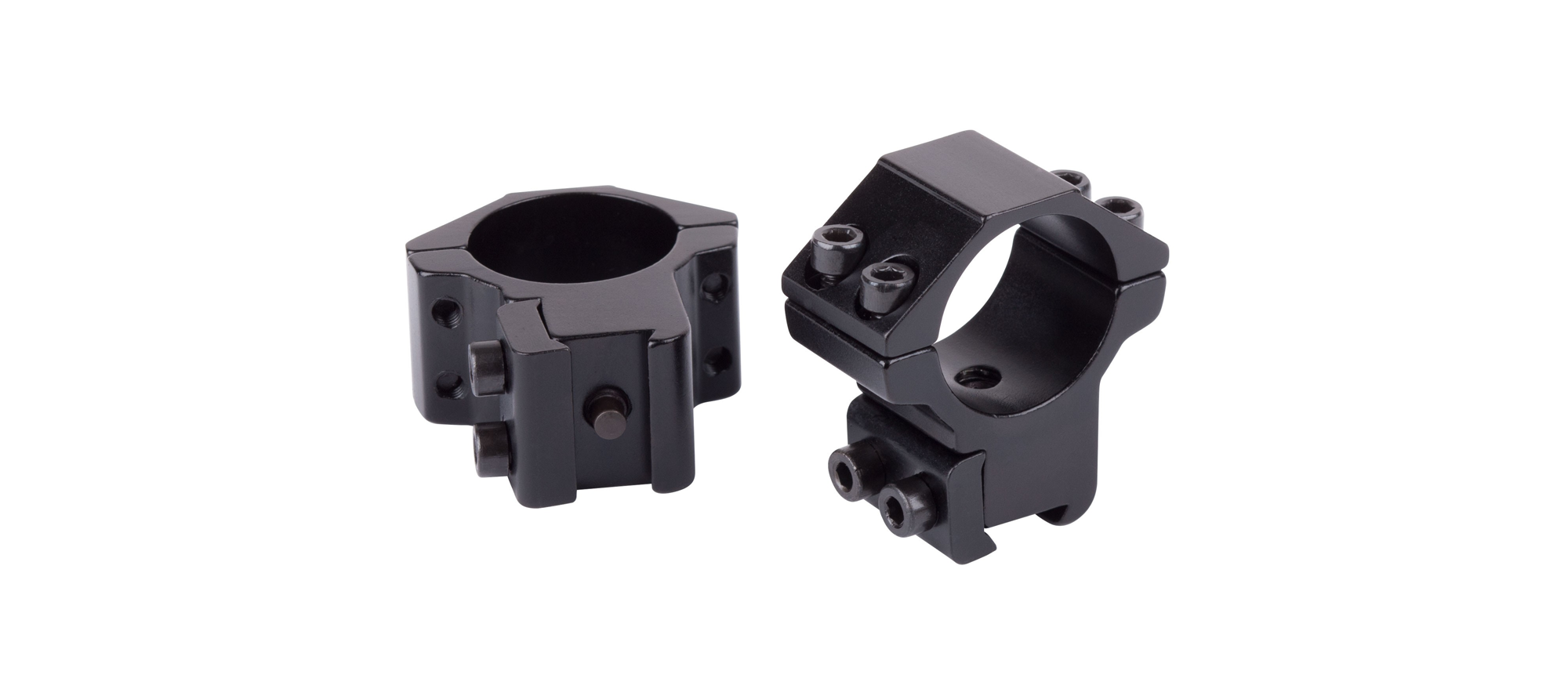 Anillos de 1 pulgada con base media para riel 3/8 o carabinas calibre 22 de aluminio color negro 4 pernos de sujeción en cada anillo soporta miras hasta 45mm de lente objetivo CPM2PA-25M