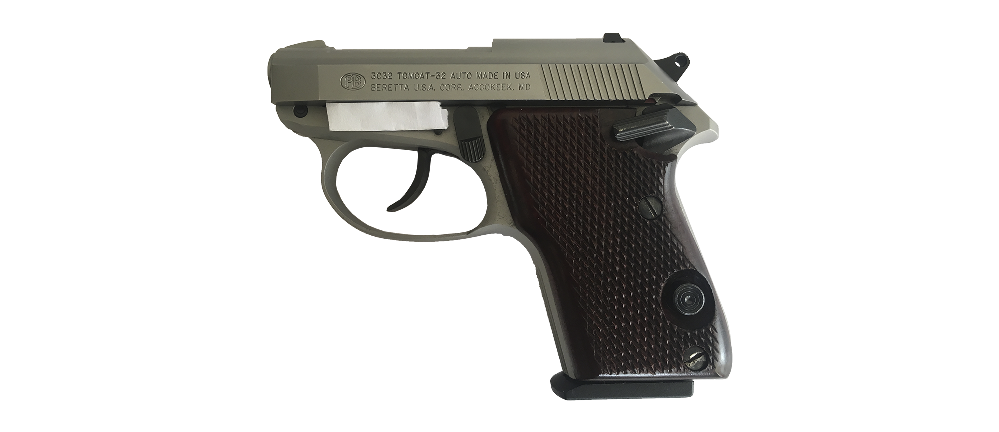 Pistola marca Beretta modelo 3032 TOMCAT calibre 32 AUTO capacidad 6+1 acabado Acero Inoxidable con 01 Cacerinas y Estuche Plastico en muy buen estado imágenes reales