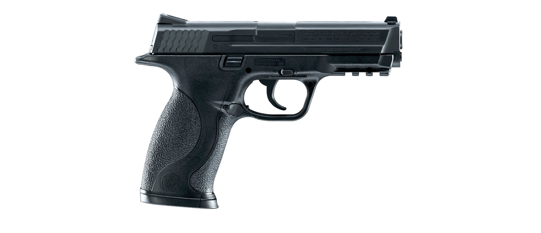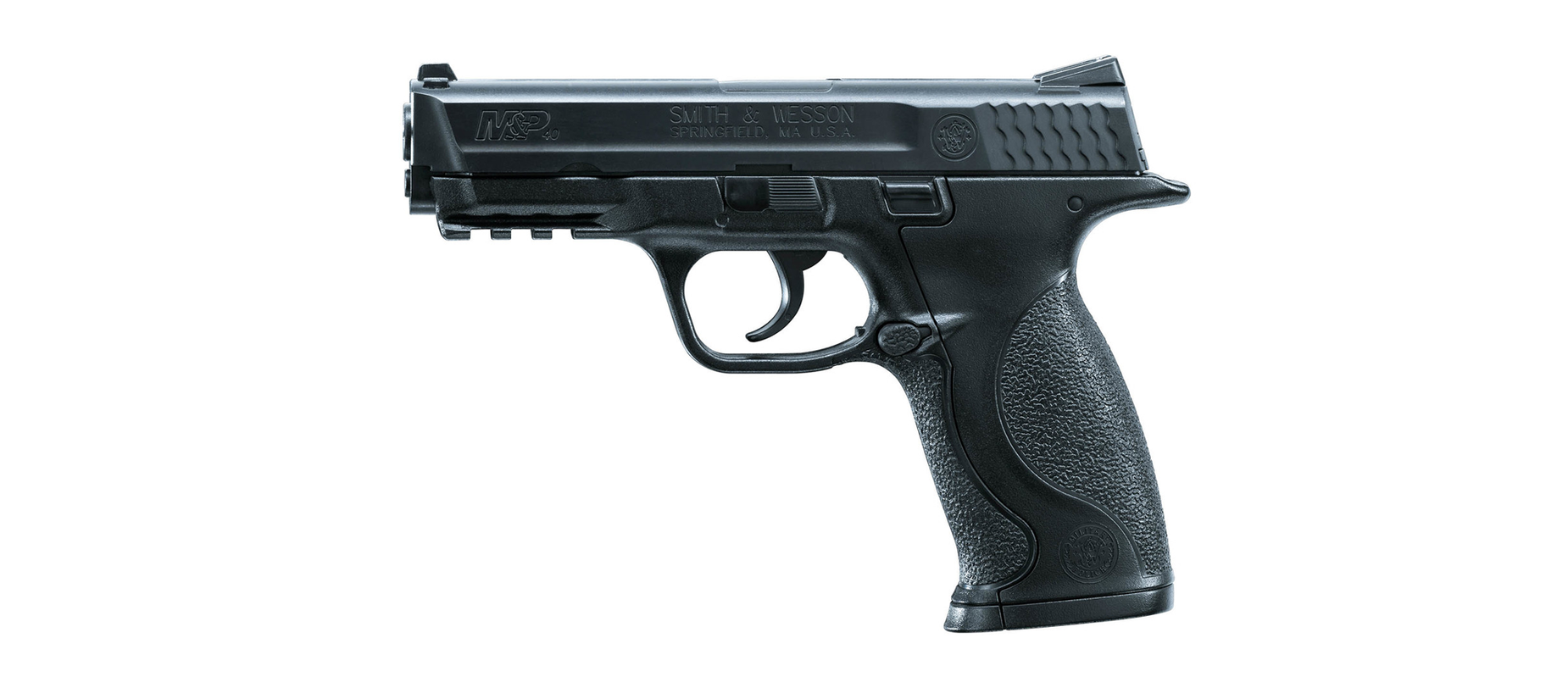 Pistola de aire SMITH & WESSON M&P 40 calibre 4.5BB capacidad 19 tiros velocidad 130m/s con sistema semiautomático y armazón de plástico color negro