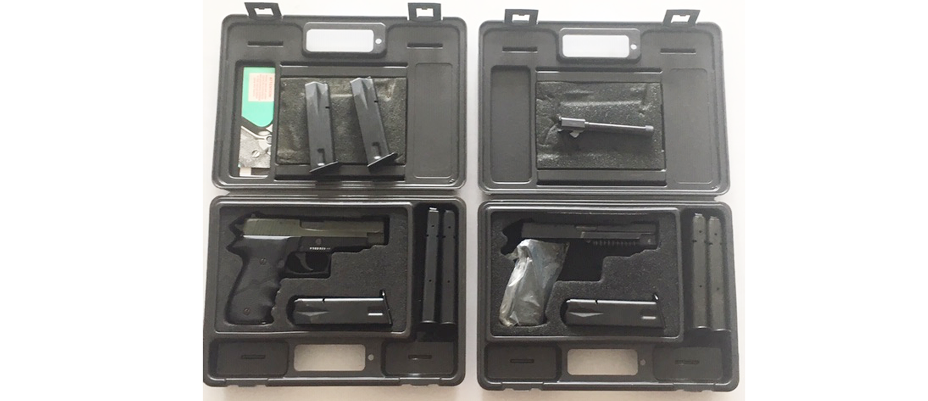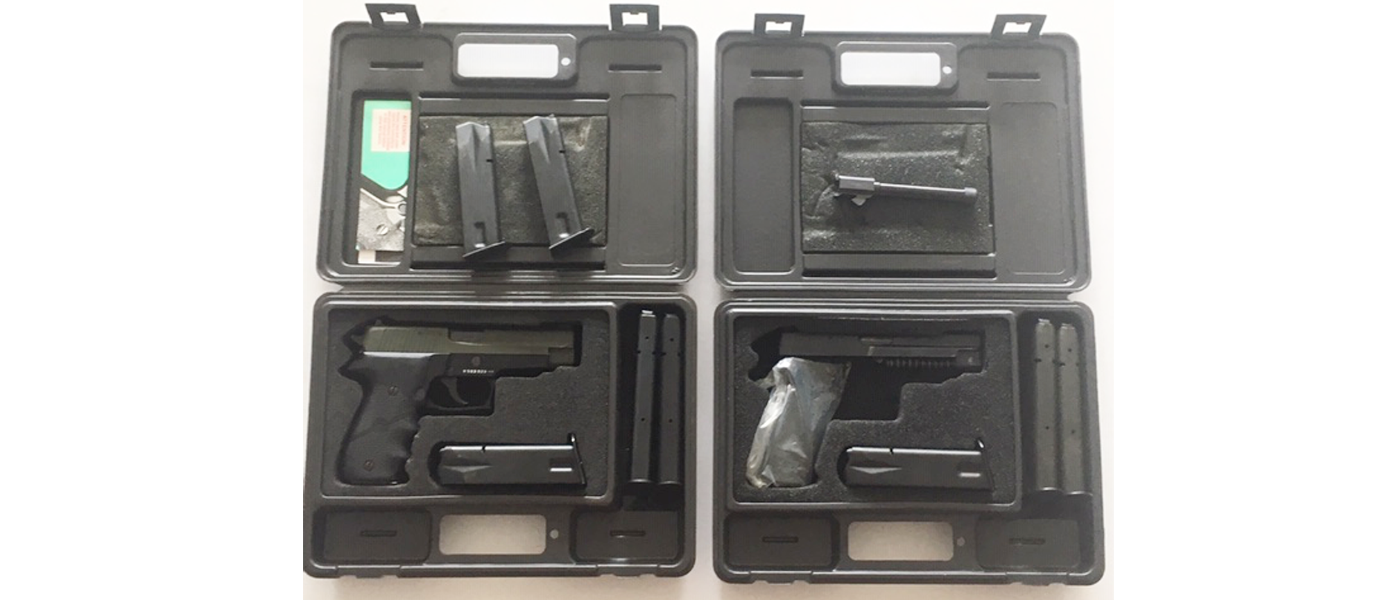 Incluye: Upper completo adicional Sig Sauer alemán 9mm (con miras de Tritium), cañón roscado en 9mm original Sig Sauer, 6 cacerinas originales de 15T, 4 cacerinas originales de 17T, 2 maletines edición especial originales, UNICO DUEÑO.