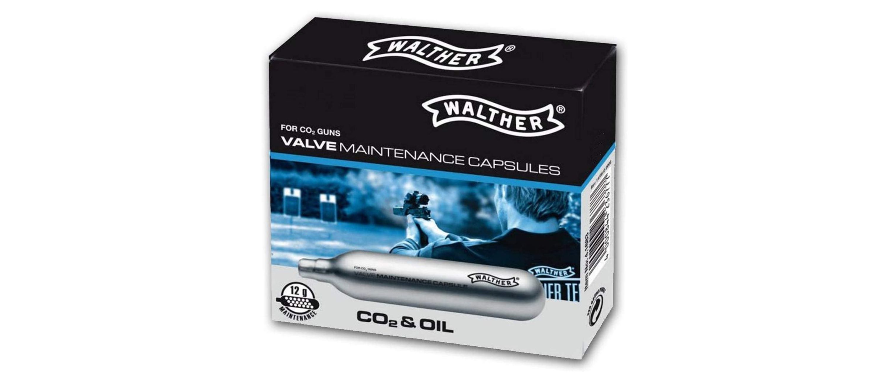 Además del gas CO₂, las cápsulas de mantenimiento de la válvula también se llenan con 0,5 g de un aceite especial que limpia y engrasa la válvula durante el disparo y al mismo tiempo proporciona una capa de aceite a todas las partes deslizantes del mecanismo. El uso regular de cápsulas de mantenimiento de válvulas asegura una precisión constante y un funcionamiento confiable.