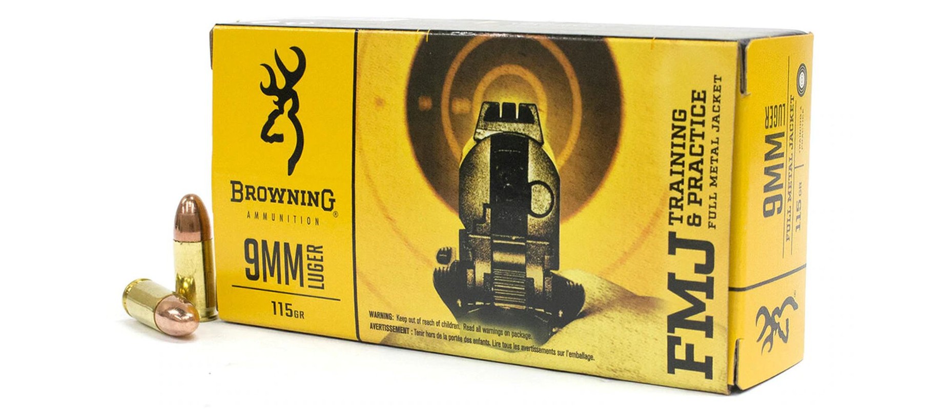 Balas calibre 9mm (9x19mm) BROWNING 115gr punta enchaquetada (FMJ) caja x 50 unidades (USA)