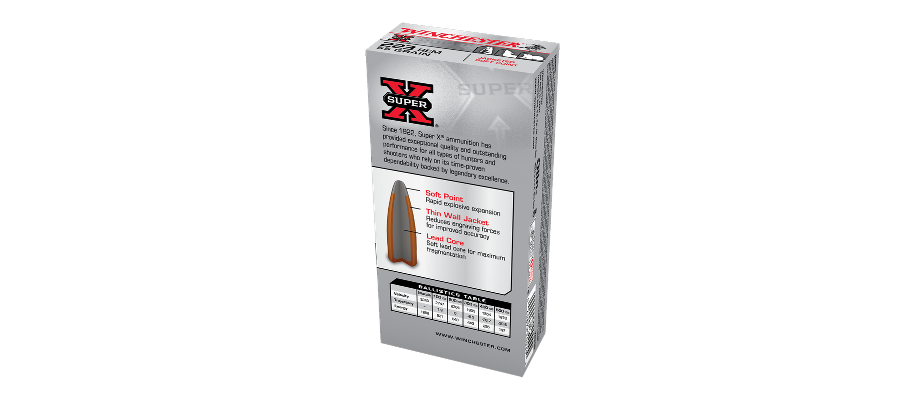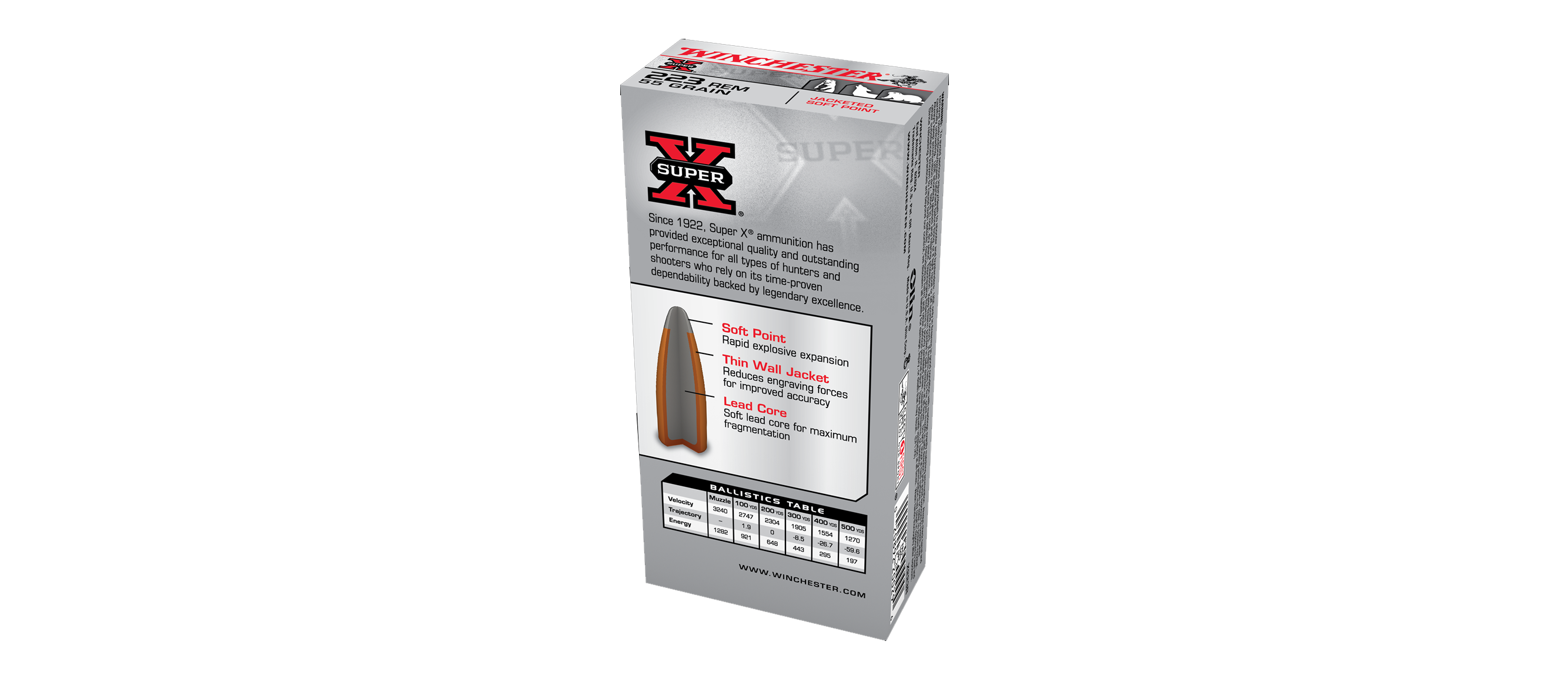 Balas calibre 223 WINCHESTER 55gr punta blanda SP (Soft Point) caja x 20 unidades (USA) X223R