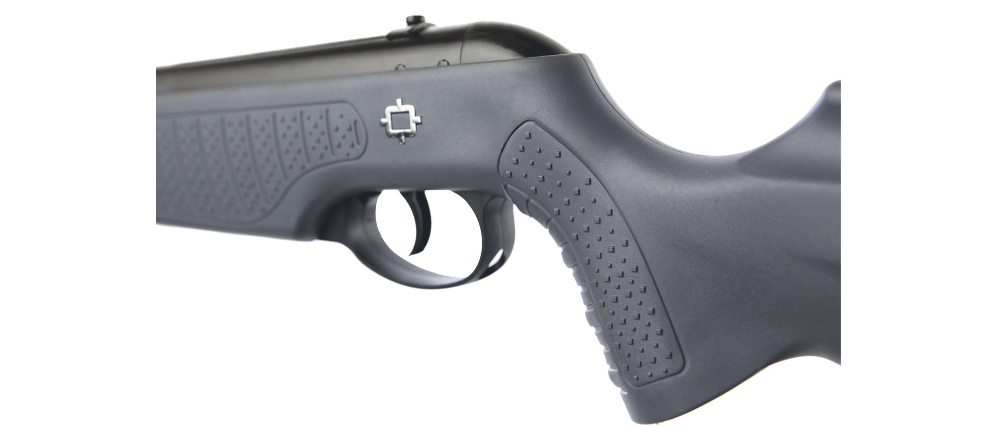 Una culata innovadora y resistente combinada con una planta de alta potencia. Fiable como todas las Norica gracias a su sólida fabricación y a su muelle de acero alemán. Miras abiertas con fibra óptica, seguro automático y compartimento portaobjetos ubicado en el pistolet.