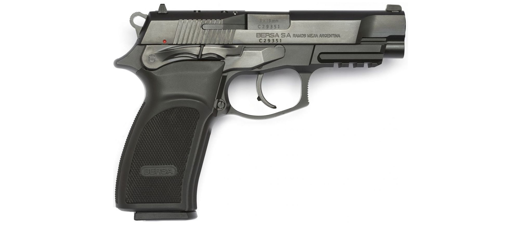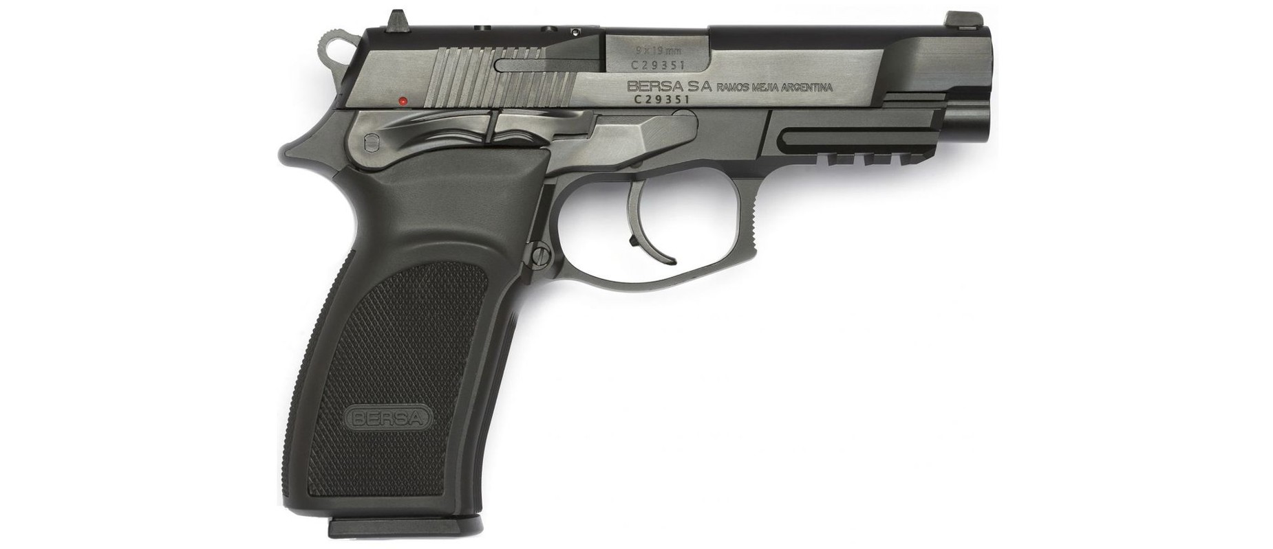 - Elementos de puntería: Alza empotrada en la corredera con cola de milano y líneas resaltadoras en blanco para puntería rápida. Guión fijo con punto blanco.