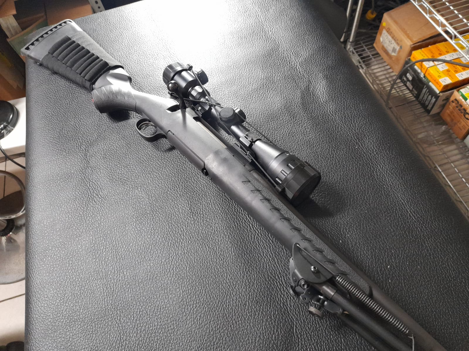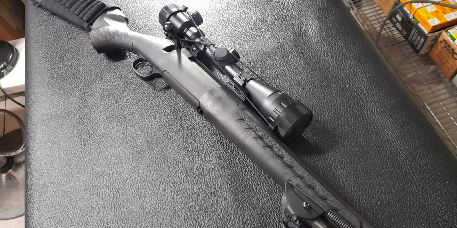 Incluye mira, anillos, funda verde de lona Gun Mate, bípode, 2 casquillos percutores, 1 calibrador láser y 2 cajas de munición Winchester.